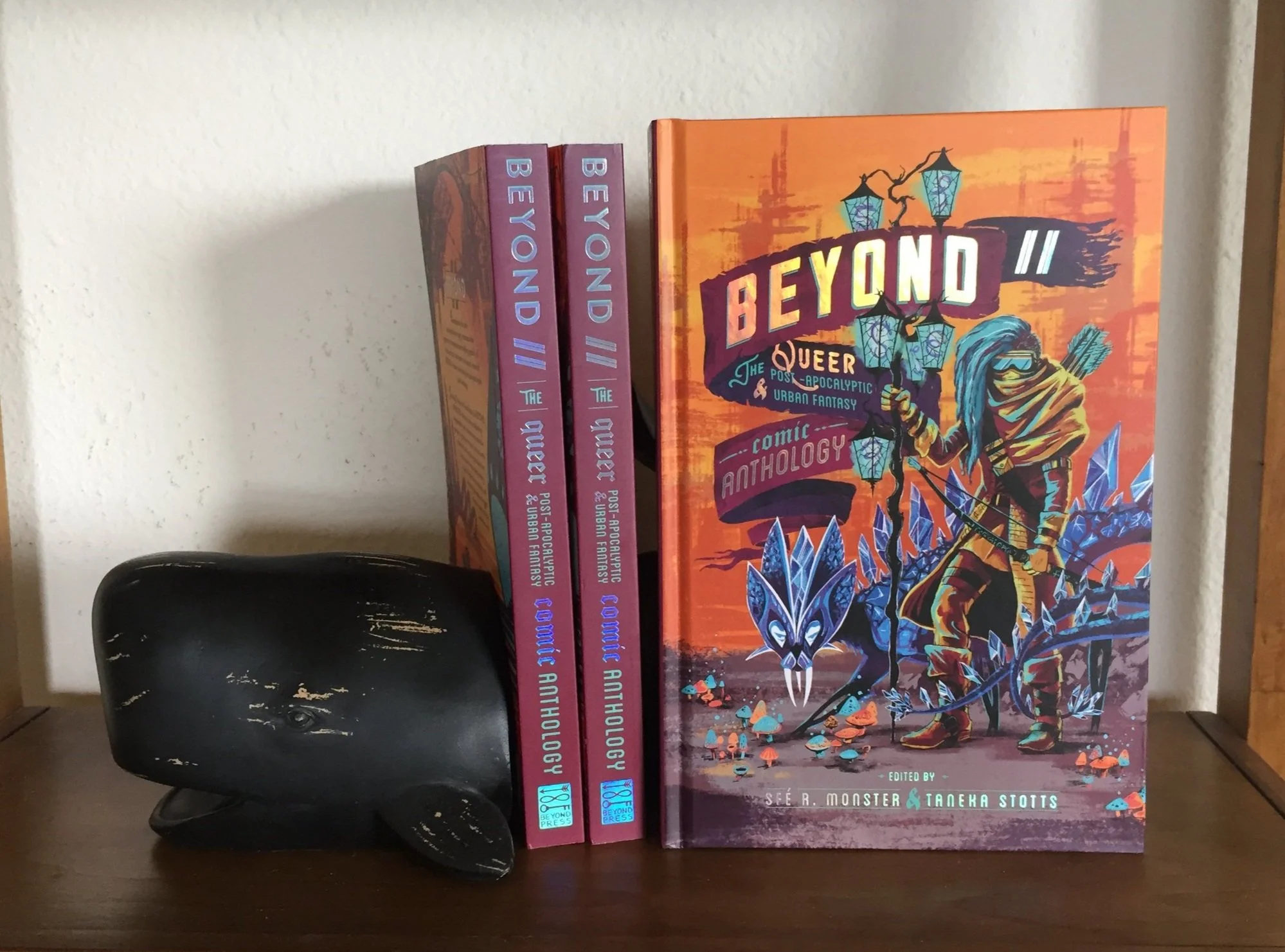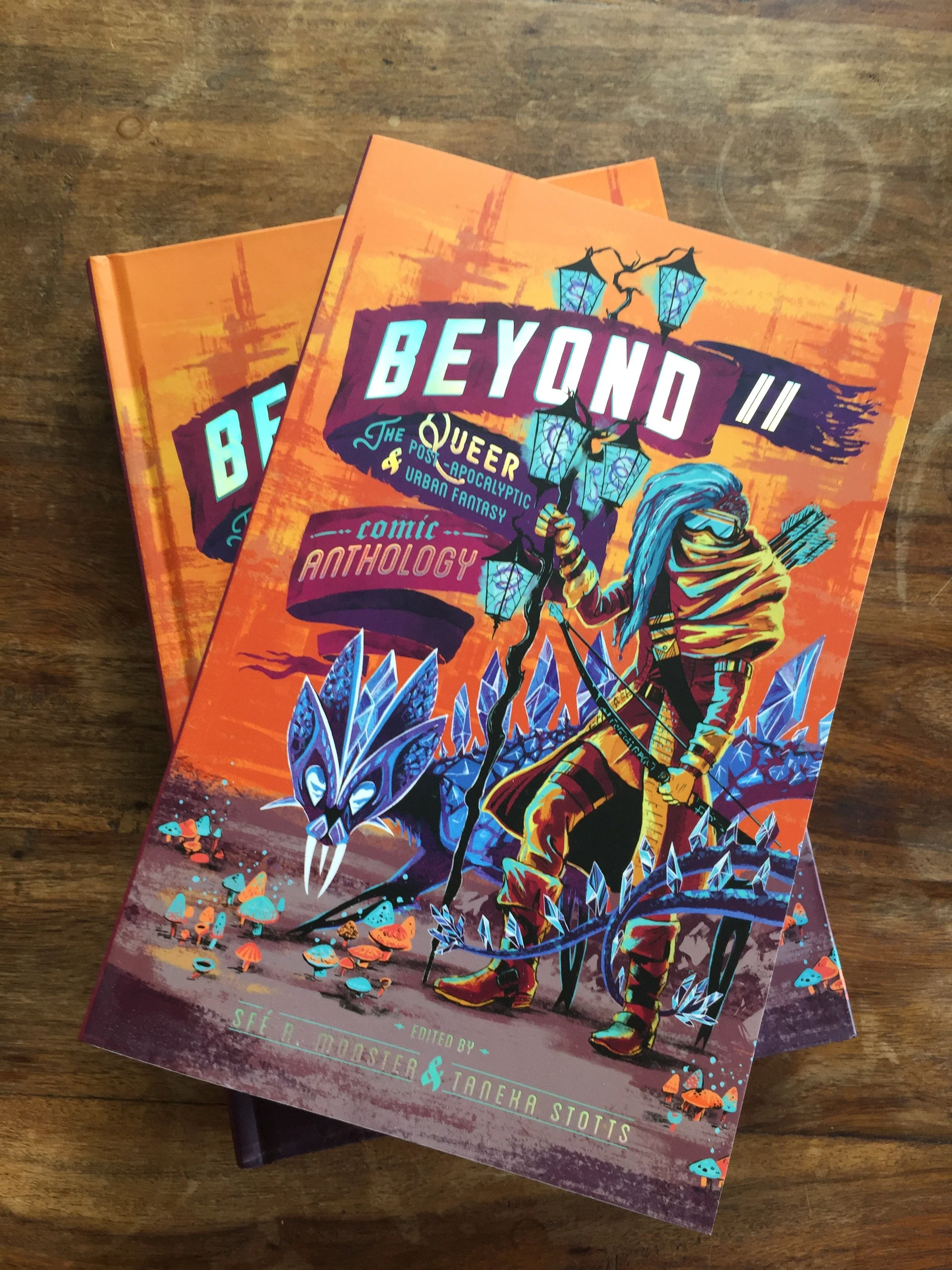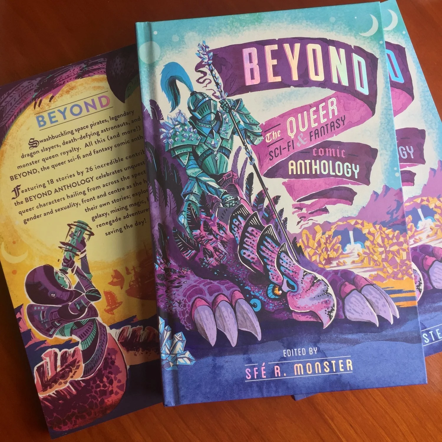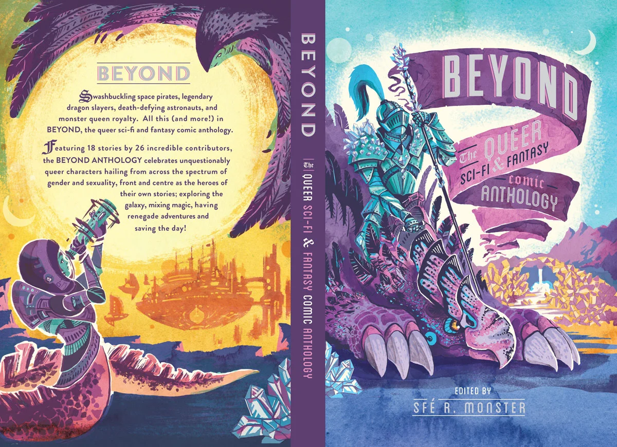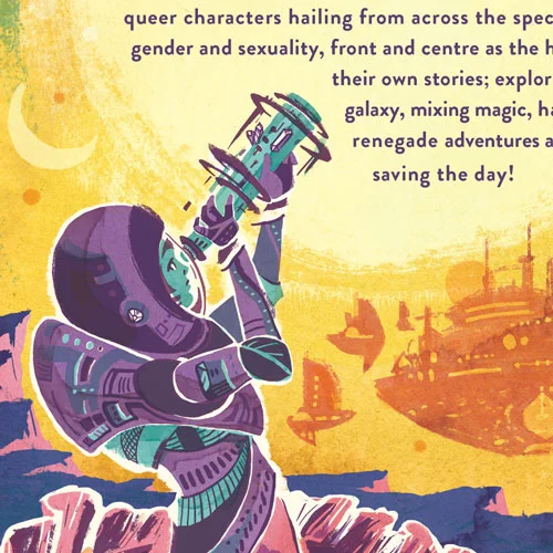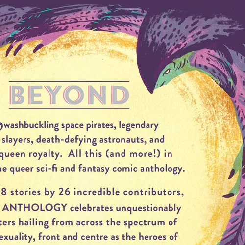 Cover art and design for the Lambda Literary Award-winning Queer Sci-Fi and Fantasy Comics Anthology. Featuring 18 stories by 26 contributors, the anthology celebrates queer characters hailing from across the spectrum of gender and sexuality, front and center as heroes of their own stories.