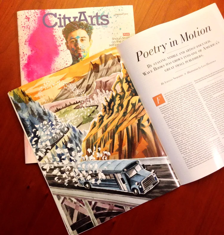 Full page illustration for a feature article on Wave Publishing, one of the oldest independent publishers in the country.