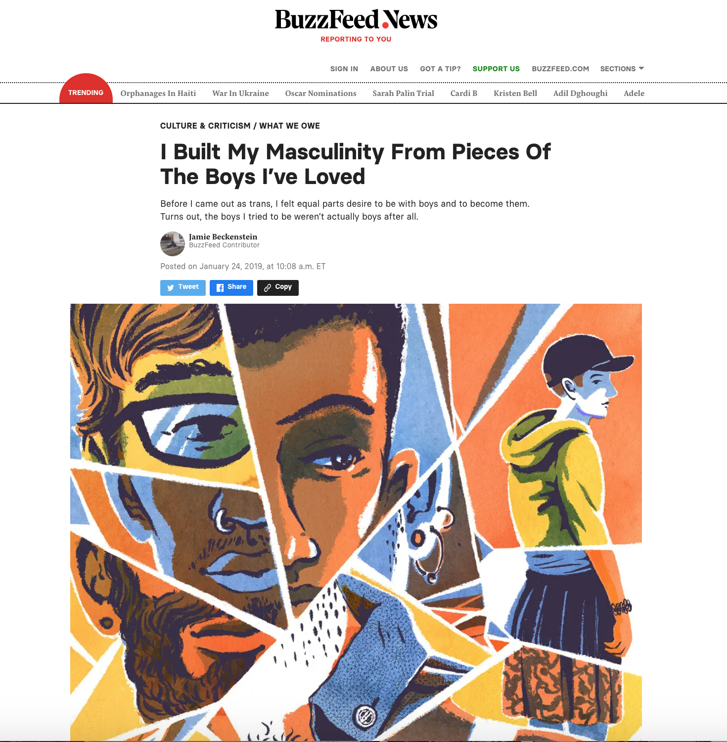 Editorial Illustration for the essay I Built My Masculinity From the Pieces of the Boys I've Loved by Jamie Beckenstein